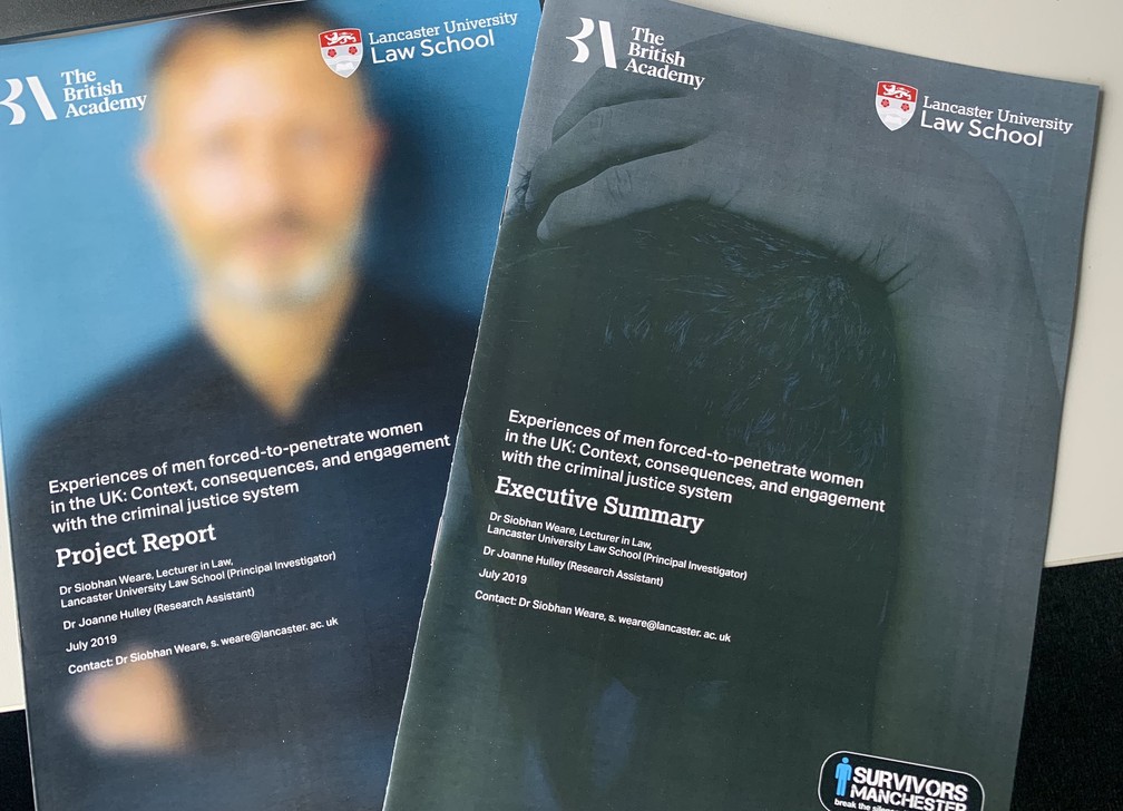Siobhan Weare, da faculdade de Direito da Universidade de Lancaster, fez a primeira pesquisa sobre penetração forçada no Reino Unido entre 2016 e 2017, reunindo relatos de mais de 200 homens por meio de uma pesquisa online.